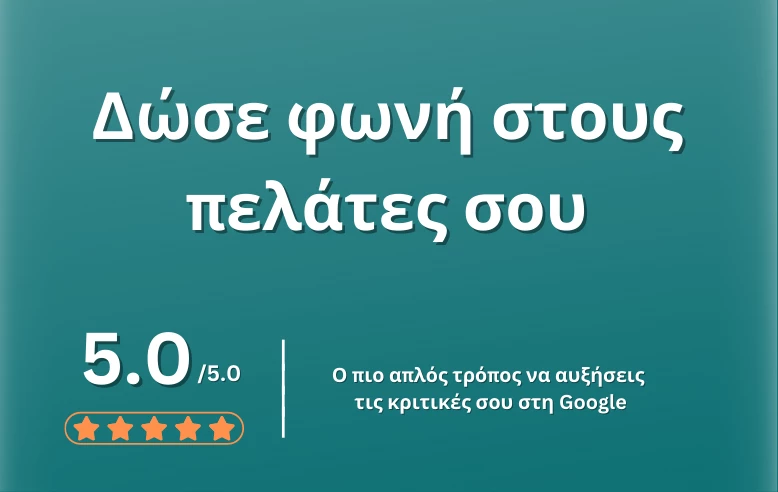 Κάθε νέα κριτική ενισχύει τη θέση σου στη Google και αυξάνει την πιθανότητα επιλογής από νέους πελάτες.
